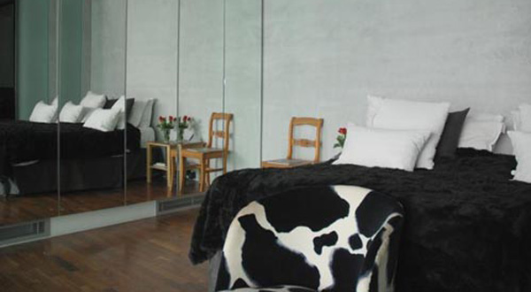 LIVING ROOM สุดโมเดิร์นของบ้านหลังนี้ ดึงเอาคู่สี ดำ-ขาว มาใช้โดยผ่านตัวแทนค่าของสีด้วยหนังวัวแท้เป็นคอนเซ็ปต์หลักในงานตกแต่ง เริ่มจากพรมที่พื้นซึ่งเข้ากันกับภาพประดับที่ผนัง คุมโทนสีดำ-ขาวด้วยการจัดวางเฟอร์นิเจอร์สไตล์โมเดิร์นดำหนึ่งตัวและขาวหนึ่งตัว โดยเลือกโต๊ะกลางเป็นกระจกใสทรงกลม ทำให้บรรยากาศโดยรวมของ LIVING ROOM บ้านหลังนี้ดูเท่ทันสมัย และมีสไตล์เฉพาะตัวที่ไม่ซ้ำแบบของห้องพักผ่อนบ้านใคร