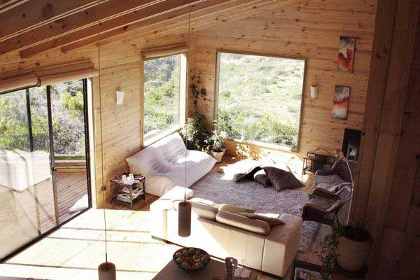 ห้องนอนนี้จะดีไซน์ให้เป็นชั้นวางของติดผนังที่ทำมาจากไม้ด้วยเช่นกันและที่สำคัญมีระเบียงด้านนอกไว้นั่งชมวิวอีกด้วย