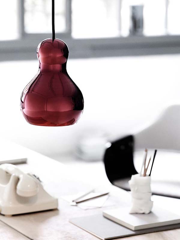 เป็นการออกแบบโคมไฟย้อยได้อย่างสวยงามทีเดียวค่ะ ออกแบบโดย Komplot ประเทศเดนมาร์ก เป็นโคมไฟที่ทันสมัยและมีความสวยงามที่โดดเด่น มีสีทั้งหมด 4 สีด้วยกัน คือ สีเงิน สีทอง สีแดง และสีดำ ซึ่งทำมาจากอลูมิเนียมขัดเงาและกระจกเคลือบ ลองนำไปแขวนอยู่เหนือโต๊ะอาหารดูสักอันสิค่ะรับรองเก๋ไก๋ไม่เหมือนใครแน่นอนค่ะ