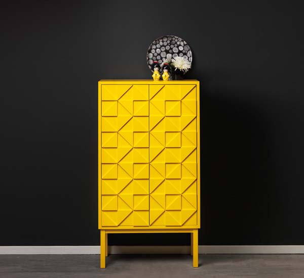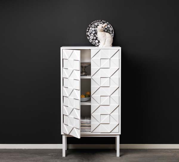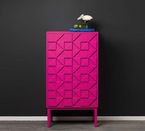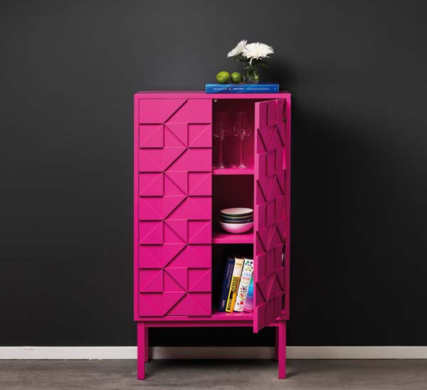 เป็นการออกแบบตู้ที่มีสีสันสดใสออกแบบโดยนักออกแบบชาวสวีเดน ตู้นี้ทำมาจากไม้ทำลวดลายด้วยการแกะสลักจึงทำให้ดูเป็นมิติมากขึ้น รูปทรงนั้นจะเป็นสามเหลี่ยม ไปดูผลงานของเขากันดีกว่าค่ะ