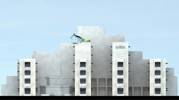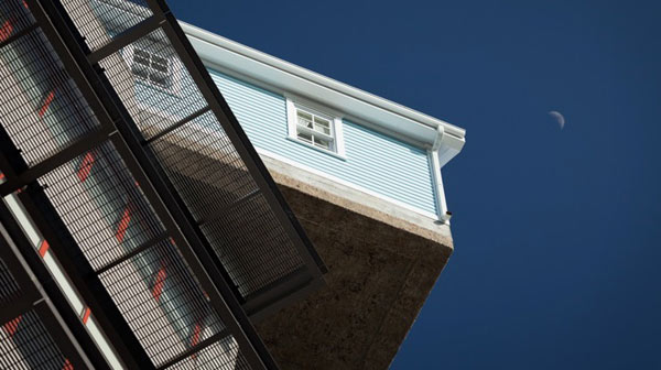 เป็นการออกแบบบ้านที่เรียกได้ว่าโดดเด่นจริงๆ ค่ะ ด้วยการใช้ศิลปะแบบร่วมสมัยของศิลปินเกาหลีที่เขาใช้ความคิดสร้างสรรค์ในการทำบ้านแปลกหลังนี้ ซึ่งเขาได้สร้างบ้านไว้บนอาหารที่ทำเหมือนว่ากำลังจะตกลงมา ซึ่งเป็นผลงานของศิลปินเกาหลี