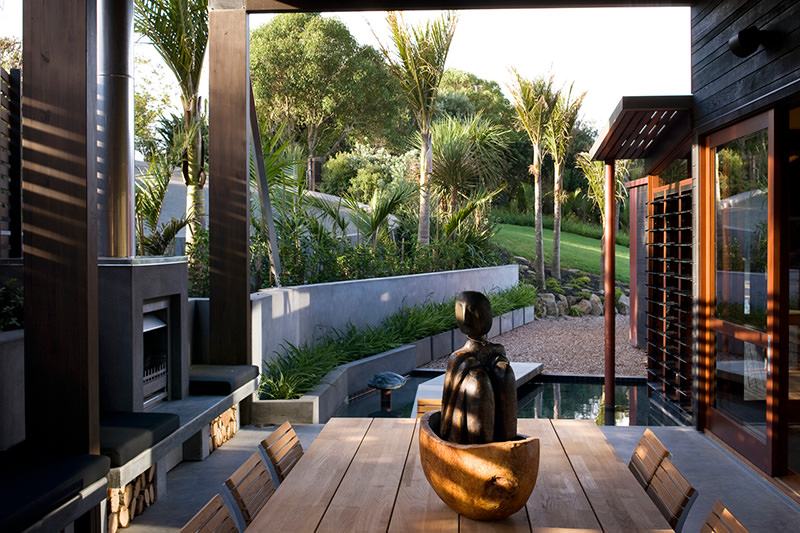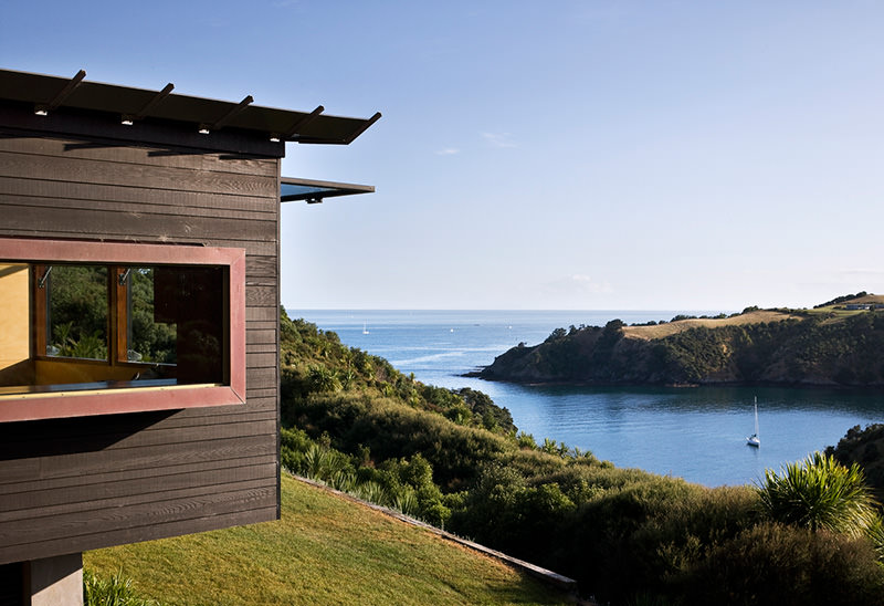 ออกแบบโดย OMKAR เขาได้สร้างบ้านหลังนี้ไว้บนเกาะ Waiheke Island เพราะสามารถมองเห็นวิวธรรมชาติด้านล่างได้อย่างชัดเจนและสวยงาม มีระเบียงให้ออกมาชมวิวด้านนอกด้วย สภาพอากาศกึ่งเขตร้อน
