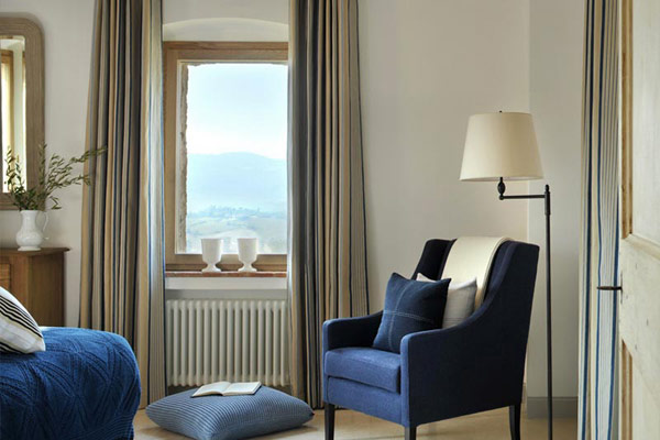 ห้องนอนค่ะ ห้องนี้ก็เห็นวิวภูเขายามเช้าสวยๆ ค่ะ ตกแต่งด้วยเฟอร์นิเจอร์สีน้ำเงินให้ดูเข้ากับบรรยากาศค่ะ