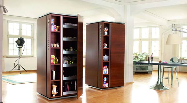 สะดวกต่อการหยิบใช้งานง่ายต่อการเก็บรักษาและยังมีทั้งเครื่องใช้ไฟฟ้า ที่ล้างจาน ไมโครเวฟ  ที่รวมอยู่ในที่เดียวกัน ออกแบบมาคล้ายๆกับตู้เก็บของที่หมุนได้ 360 องศา และเปิดได้ทุกด้าน