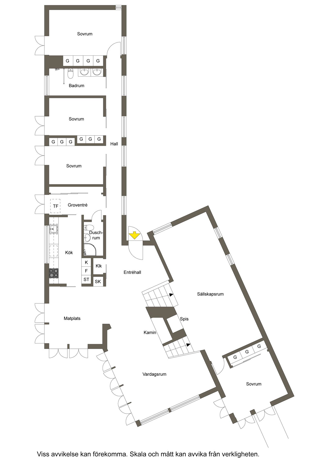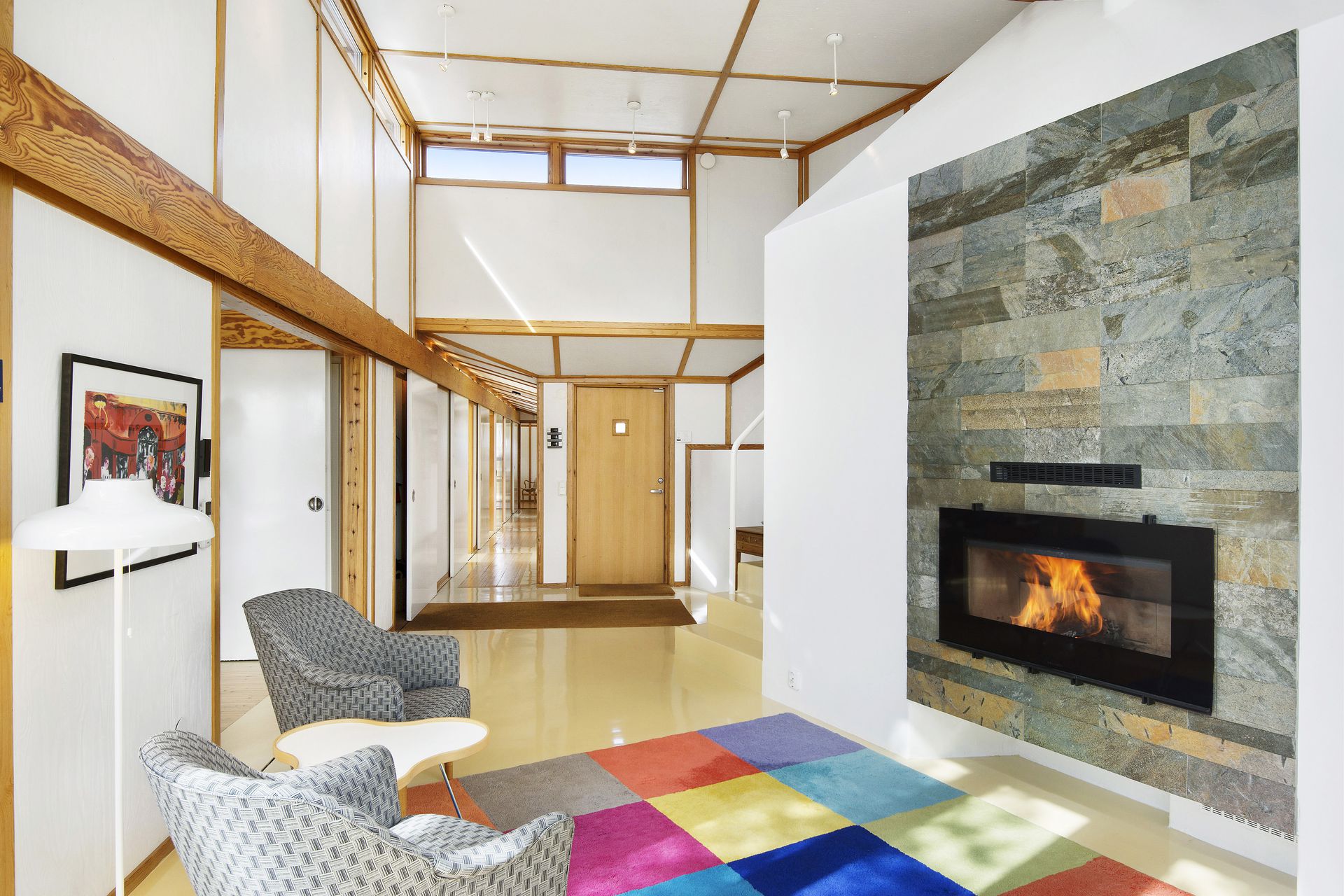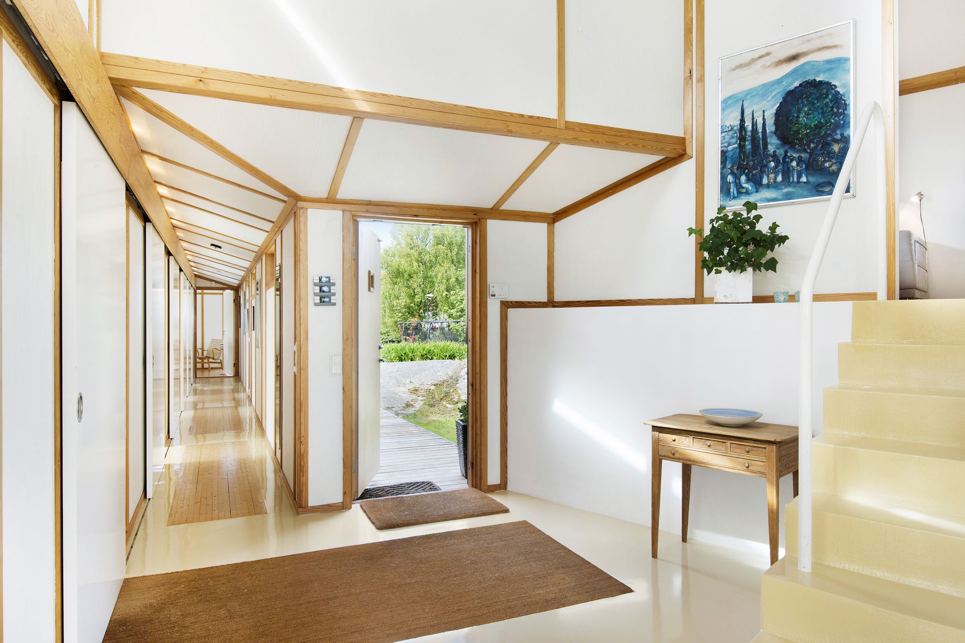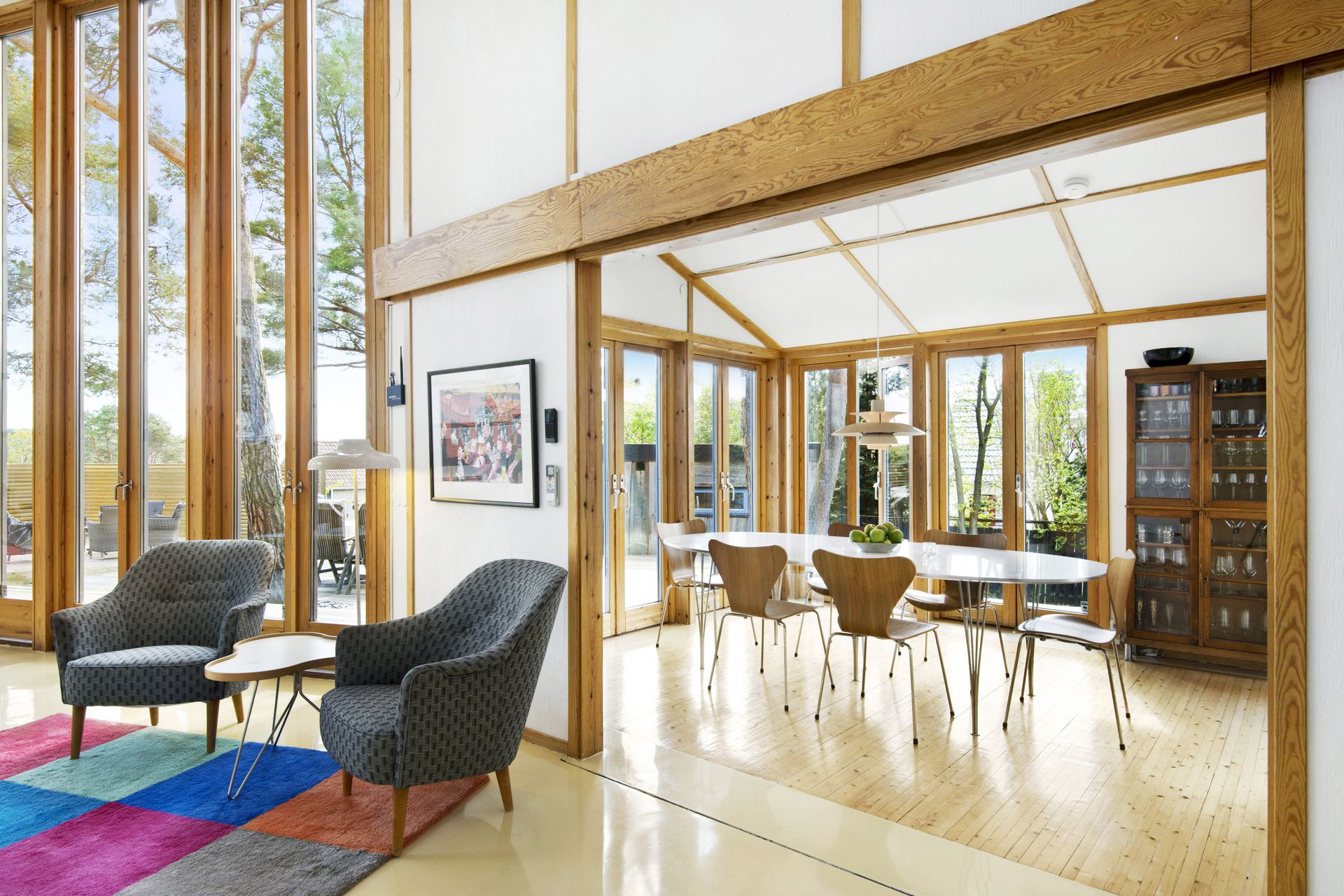 บ้านหลังนี้ถูกสร้างโดยสถาปนิกชื่ดังของสวีเดน ภายในบ้านจะถูกแบบให้เป็นห้องพักหลายๆห้องและเชื่อมโยงกันด้วยโถงซึ่งมีขนาดใหญ่ที่สุดในบ้าน บรรยากาศในการตกแต่งทำให้รู้สึกปลอดโปร่ง สบายๆ อบอุ่นด้วยเตาผิงกลางห้อง ดูกว้างขวาง เหมาะกับการจัดกิจกรรม