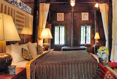 ทีแรกกะจะสร้างให้คุณพ่อคุณแม่อยู่หลังหนึ่ง เพื่อนฝูงอีกหลังหนึ่ง ออกแบบเป็นรูปตัวยู เห็นน้ำตกด้านหน้า เราเป็นคนชอบว่ายน้ำ ก็ทำสระว่ายน้ำตรงกลาง ต่อเติมห้องน้ำบนเรือนเพิ่ม มีอ่างอาบน้ำเป็นหินอ่อนสระบุรี เพราะเรือนไทยเดิมไม่มีห้องน้ำ สั่งกระเบื้องเกล็ดปลาโบราณมาทำหลังคา ใช้กระเบื้องดินเผาปูพื้นจากอ่างทอง ทุกห้องมีแอร์ ทีวีจอแบน ไม่ใช่ว่าอยู่เรือนไทยแล้วต้องลำบากเพราะฉะนั้นเราผสมผสานความเป็นอยู่แบบร่วมสมัยเข้ากับเรือนไทย ทำไปทำมาค่าใช้จ่ายสูง ไม่ว่าจะเป็นค่าคนสวน ค่าน้ำไฟ ไหนๆมีค่าใช้จ่ายแล้ว ทำเป็นธุรกิจเลยแล้วกัน