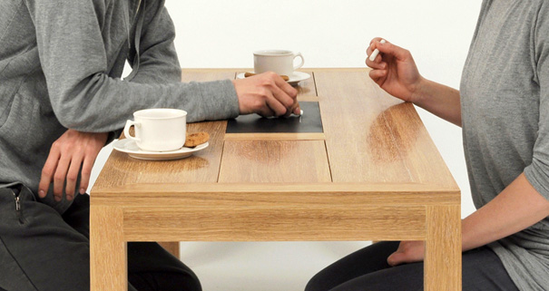 เป็นการออกแบบของ Tianyu Xiao ที่เขาได้ให้ไอเดียการออกแบบโต๊ะกระดานดำนี้เพื่อความสนุกสนานและแตกต่าง เป็นโต๊ะที่ดูเรียบง่ายและดูสะอาดตา ลองมาดูลูกเล่นของเขากันค่ะว่าเขาทำกันยังไง