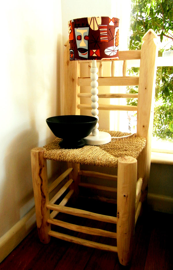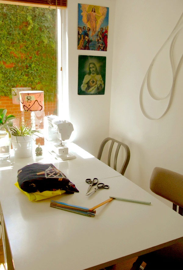 ห้องนอนนั้นเธอได้จัดให้หัวเตียงติดกับขอบหน้าต่างเพื่อให้รับกับบรรยากาศธรรมชาติด้านนอกประดับด้วยลายผ้าที่ถักด้วยได้สีสันสดในสวยๆ