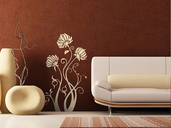 ใช้ลวดลายของดอกไม้มาตกแต่งซึ่งเข้ากับพื้นผนังสีน้ำตาล