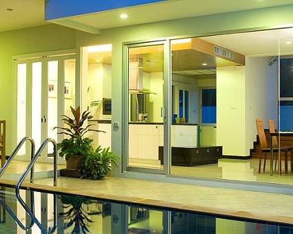 กระจกนอกจากจะให้ควาททันสมัยแล้ว ยังช่วยดึงบรรยากาศภายนอกและบรรยากาศภายในให้เข้าหากันได้เป็นอย่างดี