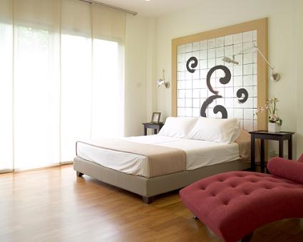 ห้องนอนแนวร่วมสมัยไม่จำเป็นต้องเน้นที่ความโปร่ง สีขาวสว่างตา หรือเน้นที่ลายกราฟฟิคเสมอไป เราอาจแต่งห้องนอนแนวนี้ได้ด้วยสีเอิรท์โทนที่ให้ความรู้สึกสงบเงียบ และอบอุ่นยามพักผ่อน แต่สังเกตุว่าของประดับทั้งหมดยังคงเน้นที่ความเรียบง่าย ตกแต่งน้อยชิ้นไม่หวือหวา ให้ความรู้สึกพักผ่อนได้อย่างเต็มที่ บางครั้งการตกแต่งห้องนอนที่ดูหรูหรา วิจิตรบรรจงมากเกินไปนั้นก็อาจจะทำให้ดูอึดอัดได้เช่นกัน