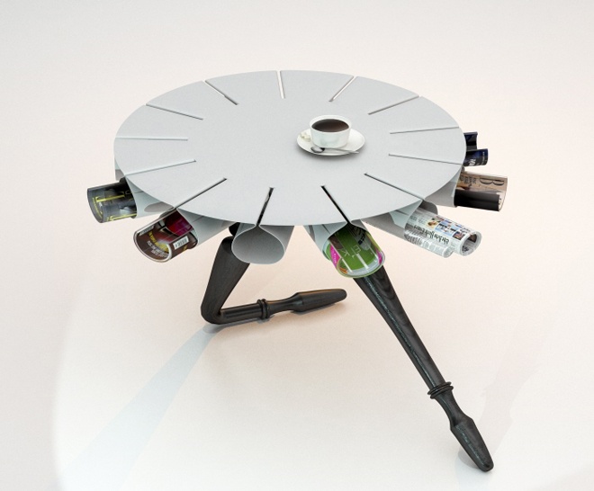 ไอเดียโต๊ะ “Ballerina Lounge Table” โดยผลงานการออกแบบของ Anna Neklesa ซึ่งได้แรงบันดาลใจมาจากลีลาการเต้นของนักบัลเล่ต์ โดยตัวโต๊ะจะทำมาจากแผ่นเหล็กซึ่งเขาจะทำช่องเล็กๆเอาไว้รอบๆด้านเหมือนกับกระโปรงของนักบัลเล่ต์เอาไว้สำหรับเก็บของเช่นนิตยสารต่างๆเป็นต้นค่ะ