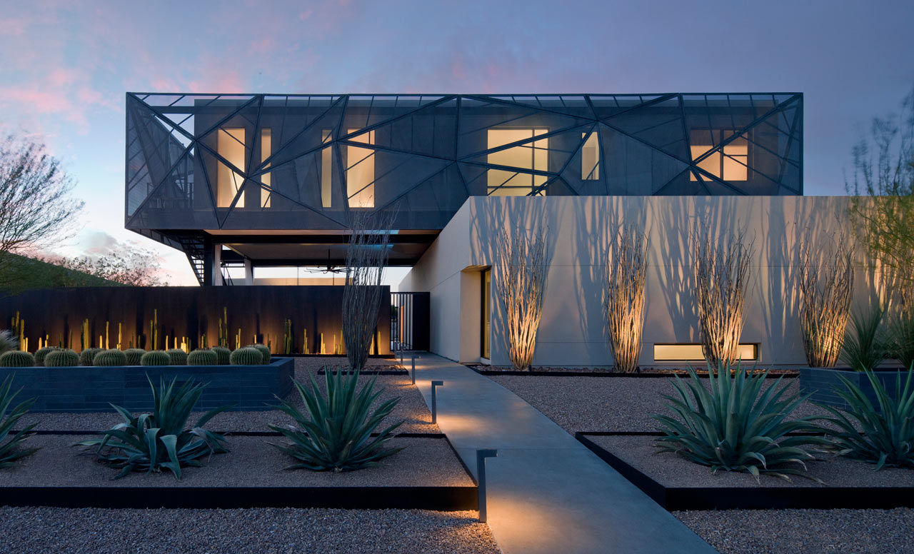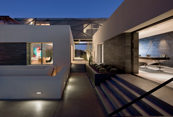 ถ้าพูดถึง Las Vegas หลายคนอาจจะนึกถึงแสงสีที่สว่างไสว แต่วันนี้เราจะพาไปชมบ้านสไตล์โมเดิร์น ที่อยู่ห่างไกลออกไปในทะเลทราย เป็นผลงานของ assemblageSTUDIO ซึ่งถูกออกแบบให้มีลักษณะเป็นชั้นๆ วัสดุที่ใช้ในการตกแต่งนั้นเป็นแผ่นหินที่มีลักษณะแตกต่างกันออกไปเพื่อให้เกิดความหลากหลายของพื้นบ้าน ที่ชั้นบนสุดนั้นถูกห่อหุ้มไว้ด้วยตะข่ายที่ใช้ตกแต่งเพื่อความสวยงามและการปัองกันความร้อนจากแสงแดดในตอนกลางวัน