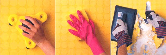 ส่วนผนังที่เคยติด Wallpaper มาแล้ว ขั้นตอนก็จำเป็นต้องใช้แรงงานมากขึ้นไปอีก เพราะต้องลอก Wallpaper เก่าพร้อมด้วยคราบกาวทุกชนิดออกให้หมด จากนั้นจึงเริ่มขั้นตอนการเตรียมพื้นผิว ก่อนที่จะลงสีรองพื้นครับผม