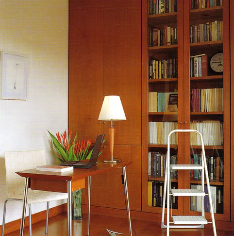 มุมนี้ถือว่าประหยัดพื้นที่สุดๆค่ะด้วยการนำหนังสือมาจัดไว้ในตู้หนังสือสูงๆ ค่ะ แต่ต้องใช้บันไดปีนน่ะค่ะ ^^