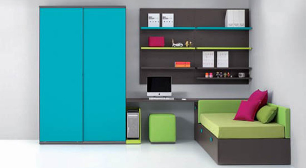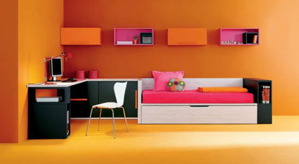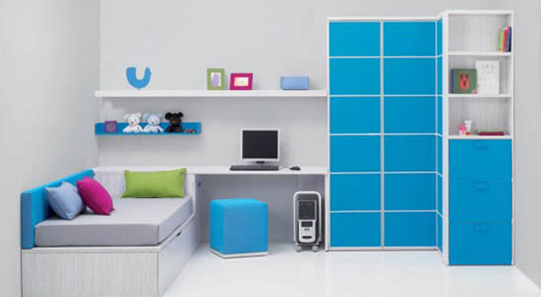 สีสันกับเด็กนั้นเป็นอะไรที่คู่กันอยู่แล้วเพราะสีสันนั้นเป็นการสร้างจินตนาการให้กับเด็กๆ ได้ดีทีเดียว สำหรับวันนี้ homedecorthai มีไอเดียการจัดห้องนอนเด็กในฤดูร้อนมาฝากเด็กๆ เป็นการตกแต่งที่ร่วมสมัยและยังอินเทรนด์ด้วยสีสันอันสดใสนี้ด้วย ซึ่งห้องนี้จะจัดไว้ได้อย่างลงตัวทีเดียวจะจัดห้องนอนเด็กด้วยการจัดเตียงนอนไว้ด้านบนและทำบันไดเล็กๆ เป็นทางขึ้นและตรงระหว่างช่องบันไดนั้นยังสามารถเป็นลิ้นชักที่สามารถเก็บของได้อีกด้วย ส่วนด้านล้างนั้นอาจทำเป็นมุมห้องรับแขกด้วยการจัดโซฟาที่มีสีสันสดใส ทำเป็นเตียงนอนด้านล้างหรือทำเป็นมุมห้องทำงานก็แสนจะลงตัว และที่สำคัญเราสามารถโยกย้ายได้ตามความต้องการด้วยซึ่งจะตกแต่งด้วยเฟอร์นิเจอร์ที่มีสีสันสดใส