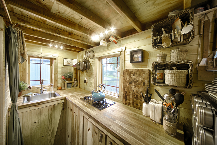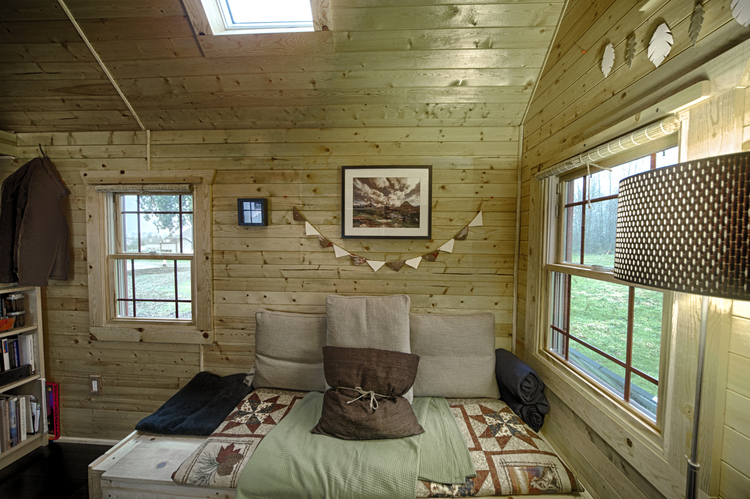 บ้านไม้เคลื่อนที่ขนาดกระทัดรัด น่าอยู่ บ้าน DIY หลังนี้ เจ้าของบ้านใช้เงินในการตกแต่งเพียง 20,000$ สร้างโดย Malissa and Chris Tack มีพื้นที่ใช้สอยเพียง 140 ตารางฟุต มีแผงโซล่าเซลล์ ใช้ในการรับพลังงานจากแสงอาทิตย์ ตัวบ้านออกแบบให้มีหน้าต่างโดยรอบเพื่อระบายอากาศได้ดีและเพียงพอ มีห้องนั่งเล่นขนาดเล็ก มีห้องครัวที่ตกแต่งออกมาดูมีพื้นที่กว้างจนน่าแปลกใจ