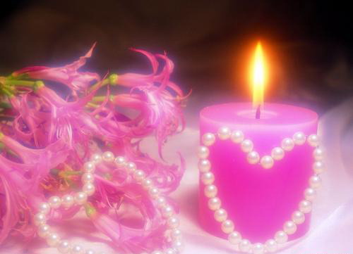 เทียนสีชมพู : เทียนสีชมพูเป็นสัญลักษณ์ของความรักที่ อ่อนหวาน น่าทะนุถนอม มันเหมาะมากที่จะจุดขึ้น ในยามที่คุณกอด หรือคลอเคลียเบาๆกับคนรักของคุณ