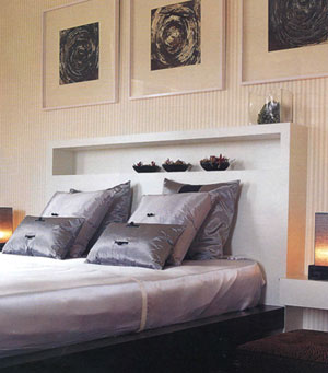 2.  Modern Style เป็นรูปแบบที่คนหนุ่มสาวรุ่นใหม่หลายคนใฝ่ฝัน สีหลักของห้องเน้นที่สีขาวสะอาดหัวเตียงเล่น step และมีเจาะช่องเพิ่มสำหรับวางของตกแต่ง เลือกภาพเก๋ๆ ติดเหนือหัวเตียง 3 ภาพ (หรือหากมี 2 ติด 2 มี 4 ติด 4 แต่เน้นที่ความสมดุลเป็นหลัก) Wall Paper ลายทาง สีอ่อน เพิ่มความสว่างให้กับห้อง สามารถเปลี่ยนได้เมื่อเก่าหรือขาด เพิ่มความหรูหราให้กับห้องโดยใช้ผ้าปูที่นอน หมอน และหมอนอิงเป็นผ้าไหม รวมทั้งมีการเลือกของตกแต่ง เช่น โคมไฟผ้าไหมสีเทา หรือมีอ่างดอกไม้เทียม ทำให้ห้องสไตล์ modern ที่มีแต่เหลี่ยมๆ หวานขึ้นได้อย่างน่าอัศจรรยตา