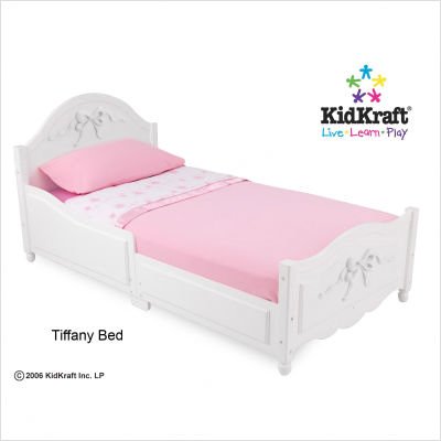 สีขาวบริสุทธิ์ ของ Kid Kraft บวกกับผ้าปูที่นอนสีชมพู ทำให้เตียงยิ่งดูอ่อนหวานขึ้นไปอีก