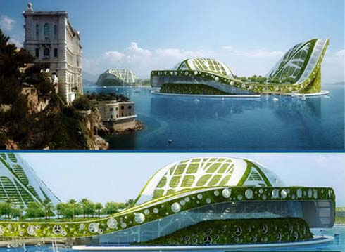 เป็นการออกแบบอาคารที่อยู่ในอนาคตของ GIEC ที่เขาได้คิดค้นที่หลบภัยซึ่งสร้างขึ้นเหนือน้ำทะเล 20-90 ซม. ใช้ชื่อโครงการว่า Lilypad เป็นที่หลบภัยจากสภาพภูมิอากาศ ดีไซน์ผนังกับหลังคาให้เป็นสีเขียว ส่วนด้านบนนั้นจะปกคลุมไปด้วยพงหญ้าเหมือนกับโอเอซิสปาล์มซึ่งจะใช้แพลงก์ตอนในทะเลและพืชในมหาสมุทร เพื่อนๆ ลองวางแผนจับจองสถานที่พักในอนาคตที่แสนจะหรูหรานี้ดูไหมค่ะ แต่กว่าจะได้ใช้ก็ต้องรอถึงปี 2100 น่ะค่ะ ^^