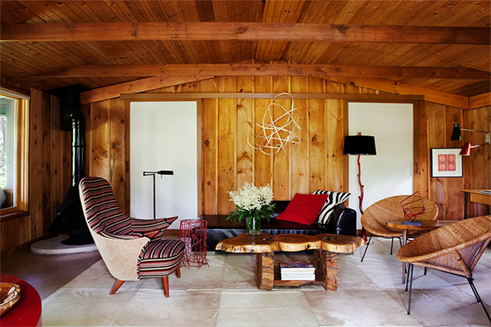 ห้องนี้เป็นห้องนั่งเล่นติดวิวธรรมชาติจะใช้ไม้ที่ฝาผนังเป็นไม้ที่ไม่ได้ผ่านการเคลือบสีเป็นไม้จริงลายธรรมชาติซึ่งตัดกับวิวข้างนอกได้ดีทีเดียว