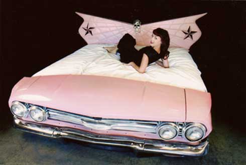 ออกแบบโดย jake schop shop เป็นการสร้างเฟอร์นิเจอร์เตียงนอนในรถให้ออกแนวหวานๆ เพื่อการนอนที่ไม่น่าเบื่อและยังทำให้สนุกกับการนอนเป็นที่สุด โดยใช้รถในปี 1960 Chevy Impala Bed มาทำเป็นเตียงนอนที่แสนหวาน เพราะเป็นรถที่เปิดประทุนได้
