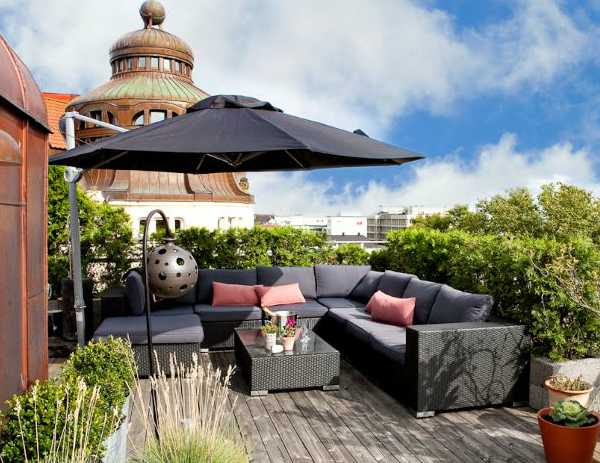 หรือถ้าระเบียงดาดฟ้ายังเป็นพื้นที่โล่งๆ อยู่ก็ให้ปลูกต้นไม้ในบริเวณรอบๆ ก่อนแล้วนำเฟอร์นิเจอร์มาจัดตกแต่งก็ได้บรรยากาศแล้ว
