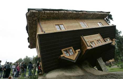 Upside Down House เป็นโครงการที่สร้างขึ้นโดยนักธุรกิจชาวโปแลนด์และ Daniel Czapiewski ที่สร้างขึ้นในโปแลนด์ที่เป็นหมู่บ้านเล็กๆ ของ  Szymbark จึงเป็นที่โดดเด่นมากต่อนักท่องเที่ยว เพราะเป็นบ้านหลังเดียวที่ทำกลับหัวเอาหลังคาเป็นฐานของบ้านและเอาตัวฐานของบ้านมาทำเป็นหลังคา เพื่อนๆ ลองดูผลงานของเขากันค่ะว่าน่าสนใจขนาดไหน