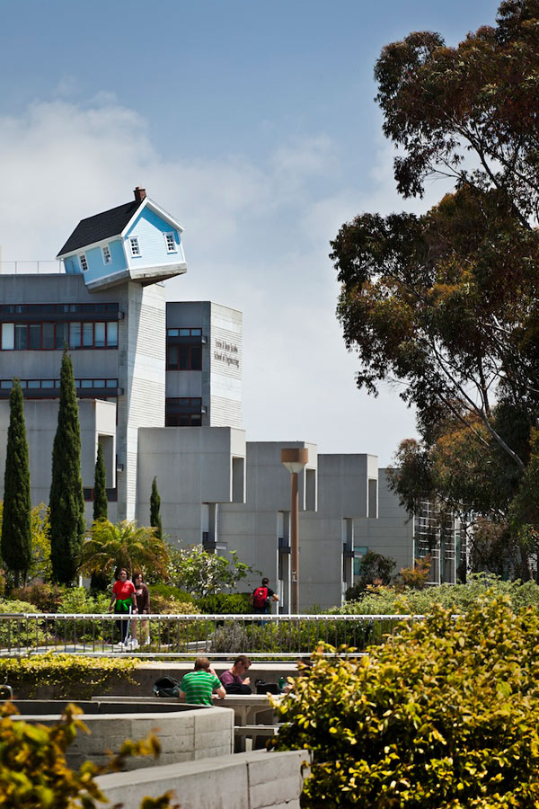 เป็นการออกแบบบ้านที่เรียกได้ว่าโดดเด่นจริงๆ ค่ะ ด้วยการใช้ศิลปะแบบร่วมสมัยของศิลปินเกาหลีที่เขาใช้ความคิดสร้างสรรค์ในการทำบ้านแปลกหลังนี้ ซึ่งเขาได้สร้างบ้านไว้บนอาหารที่ทำเหมือนว่ากำลังจะตกลงมา ซึ่งเป็นผลงานของศิลปินเกาหลี