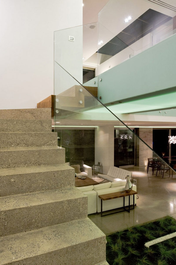 เป็นการออกแบบที่ดูสวยหรูเรียบง่าย ร่วมสมัย ภายตกแต่งผนังโดยการก่ออิฐ เน้นโชว์พื้นผิว พื้นที่รับประทานอาหารเชื่อมต่อกับห้องครัวและห้องนั่งเล่น เปิดโล่งถึงกันหมด ทำให้ดูกว้างขวาง และยังมีสระว่ายน้ำที่ล้อมรอบด้วยสีเขียวของสวนเพื่อเพิ่มความสดชื่นให้กับบ้านอีกด้วย    Read more