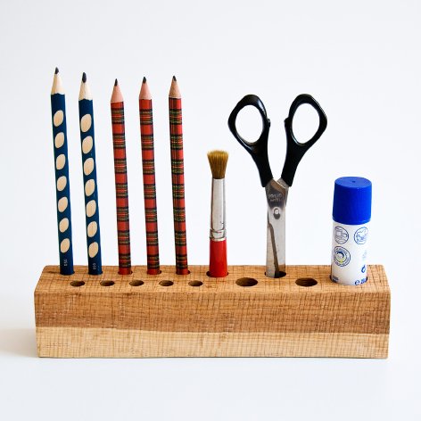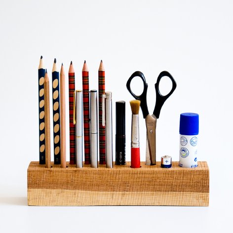 เป็นการออกแบบที่เก็บเครื่องเขียนได้อย่างลงตัวด้วยการใช้ไม้จริงมาเจาะให้เป็นรู้แล้วใช้เก็บของซึ่งเป็นไอเดียที่เรียบง่ายและยังดูคลาสสิกอีกด้วย