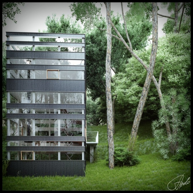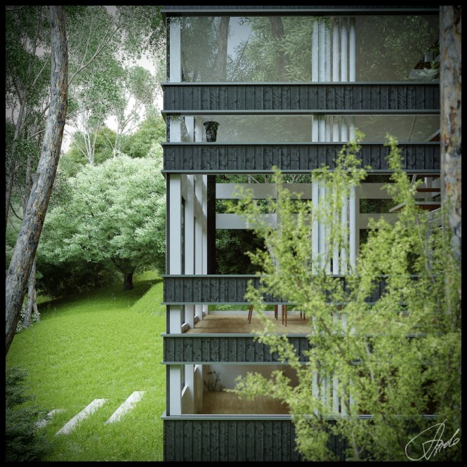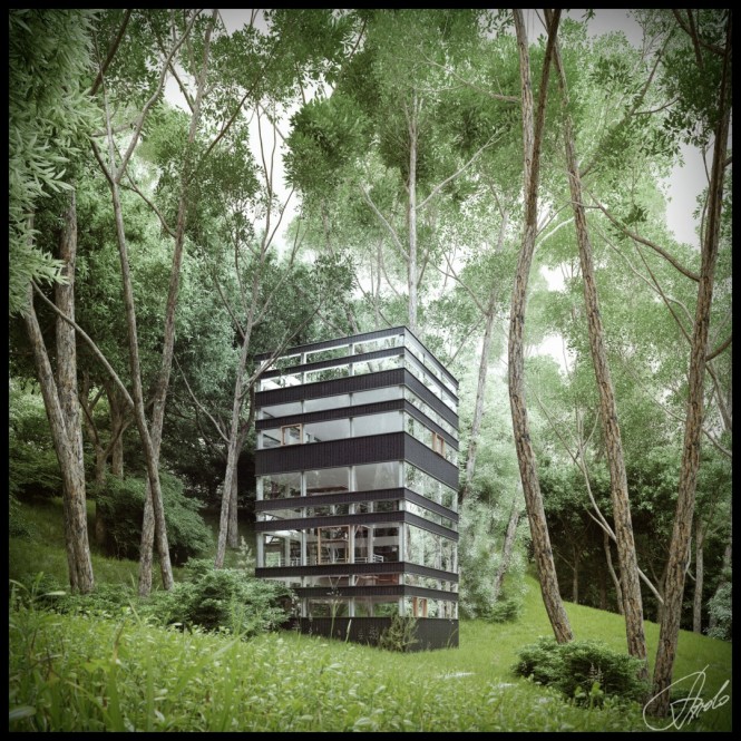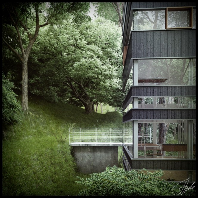 เป็นโครงสร้างการออกแบบของ  Ando Studio ที่เขาได้ออกแบบบ้านที่ตั้งอยู่ในสภาพแวดล้อมในป่าไม้ที่เป็นธรรมชาติสุดๆ ซึ่งเป็นการเหมาะสำหรับเพื่อนๆ ที่กำลังมองหาที่พักผ่อนในแบบที่ต้องการจะหนีชีวิตในเมืองที่มีความวุ่นวายและเสียงดัง มาอยู่ในที่ที่สงบแต่การตกแต่งและออกแบบภายในนั้นทันสมัยใช่ย่อย