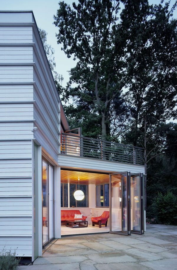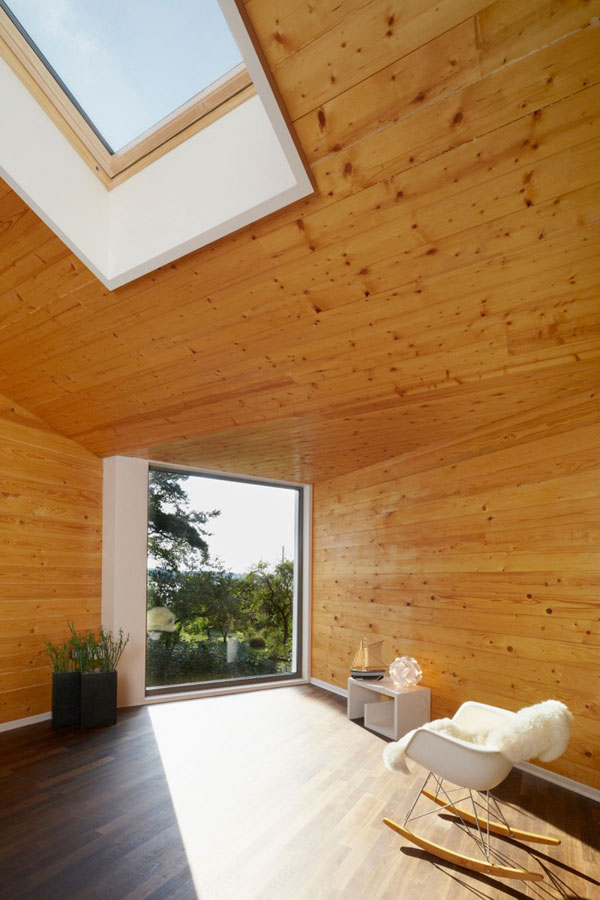 เป็นการออกแบบบ้านที่โมเดิร์นมากค่ะ กับการสร้างบ้านท่ามกลางต้นไม้ที่เขียวชอุ่ม โดยจะใช้ไม้เป็นหลัก ทาสีด้วยสีที่อ่อน  จึงทำให้บ้านนั้นดูอบอุ่น จุดที่โฟกัสที่สุดคือจะเป็นตรงกระจกขนาดใหญ่ที่ริมทะเลสาบเป็นกระจกที่มีมุมมองได้ถึง 180 องศา สามารถมองเห็นธรรมชาติได้อย่างชัดเจนทีเดียวค่ะ