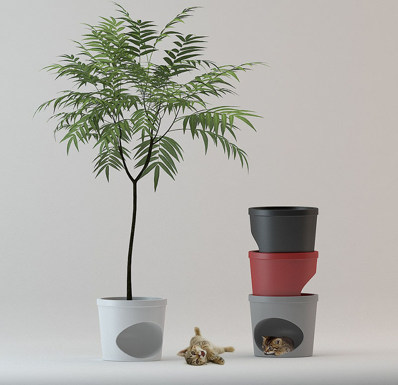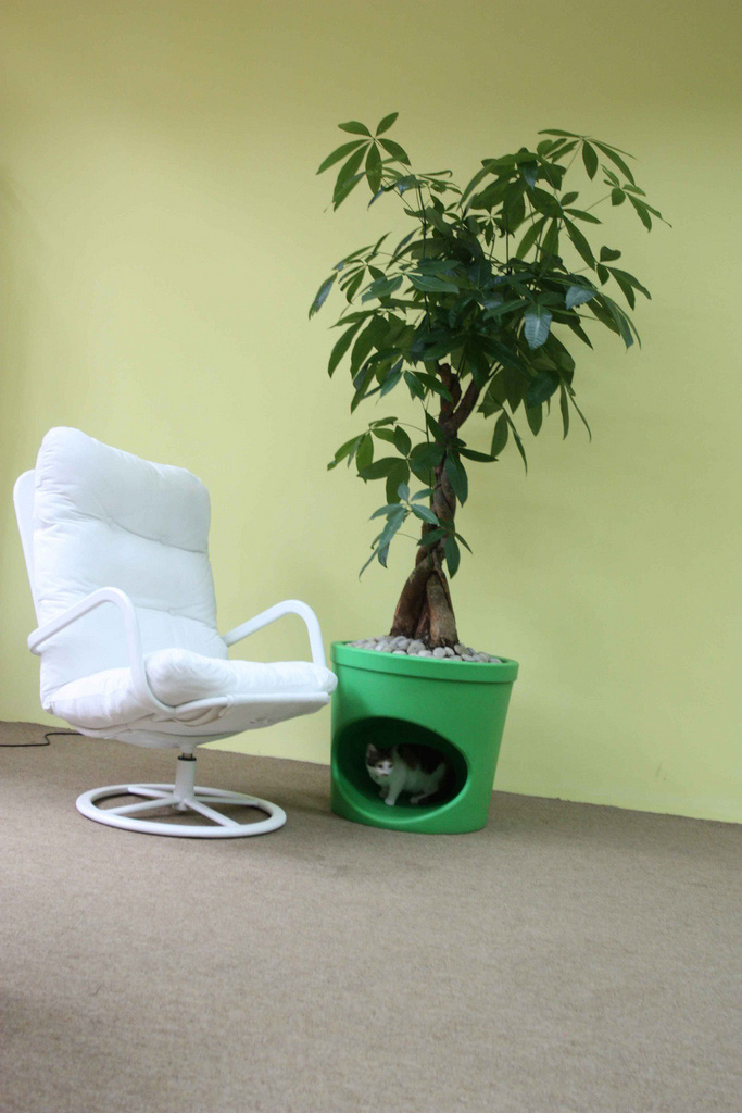 เป็นการดีไซน์กระถางต้นไม้ให้เป็นที่พักสำหรับสัตว์เลี้ยงแสนรักได้อย่างน่ารักทีเดียว ด้วยการทำช่องว่างตรงกลางกระถางต้นไม้ให้กับเจ้าสัตว์เลี้ยงของเราได้อย่างลงตัว