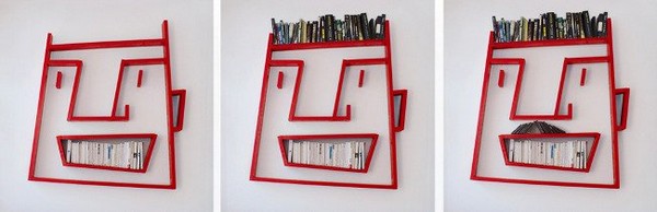 เป็นไอเดียชั้นวางหนังสือที่น่ารักและสดใสมาก กับชั้นวางหนังสือรูปใบหน้า