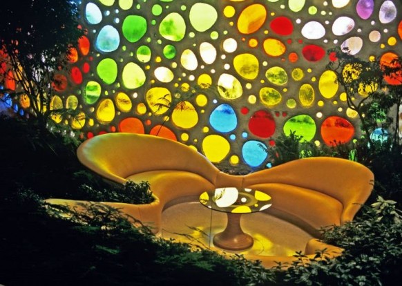 บ้านหอยทากในยามกลางคืนจะมีสีสันจกาลายที่เป็นจุดๆั นั้นได้อย่างชัดเจน