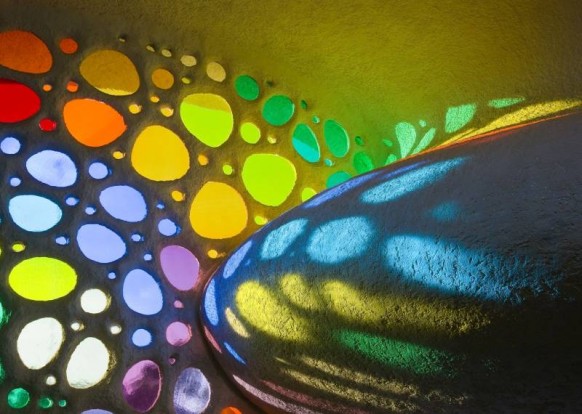 ตรงที่เป็นจุดของตัวบ้านแสงสามารถส่งผ่านเข้ามาถึงได้เพราะจะทำมาจากแก้วใสๆ ที่เป็นสี