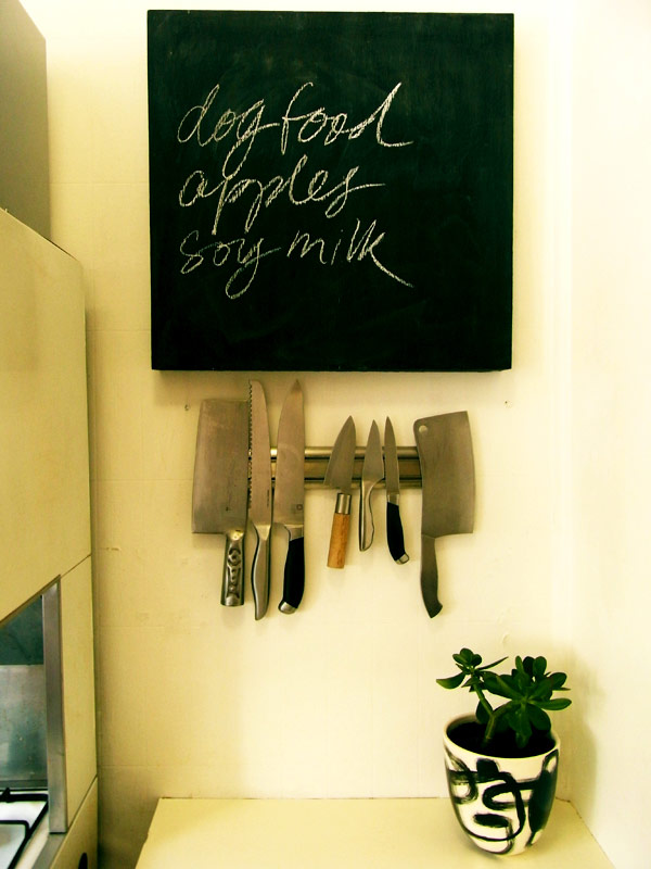 สำหรับในมุมห้องครัวเธอจะดีไซต์การเก็บมีดที่ประหยัดพื้นที่ด้วยการใช้แขวนไว้กับผนังห้อง