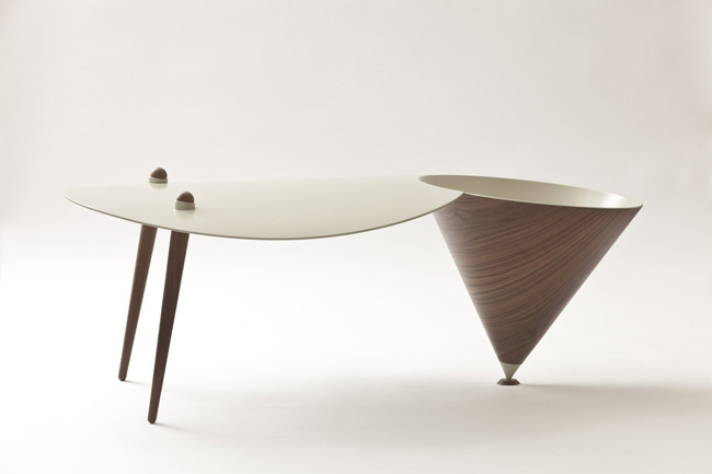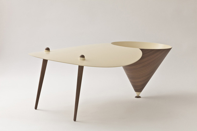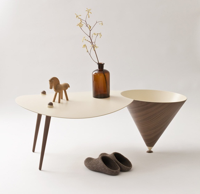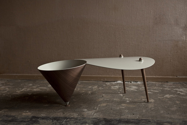 Daphna Laurens ออกแบบโต๊ะกาแฟสารพัดประโยชน์นี้ที่มีทั้งโต๊ะกาแฟ โคมไฟ กระจก ซึ่งเป็นคอลเลกชั้นในรูปทรงเรขาคณิดแบบวงกลมและจะมีขาโต๊ะสองขาอีกด้านหนึ่งจะเปนขารูปทรงกรวยกลวงซึ่งเป็นพื้นที่เก็บของเช่นเก็บหนังสือพิมพ์หรือนิตยาสาร กิ๊ปเก๋มาก