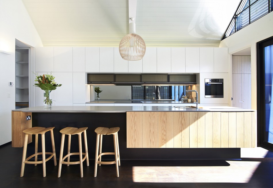 ส่วนกรณีที่เตาไฟกับซิงก์น้ำอยู่ตรงข้ามกัน ถ้าห้องครัวมีพื้นที่กว้างพอ ให้ใช้โต๊ะมาวางขั้นกลาง แต่ถ้าห้องครัวแคบ ต้องย้ายอย่างใดอย่างหนึ่งออกไป