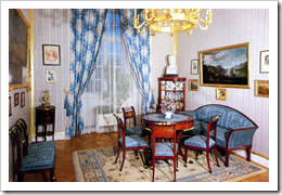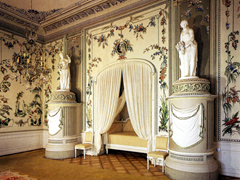 ประตูหน้าต่างตกแต่งด้วยบัวรอบวงกบโดยใช้บัวขนาดใหญ่ชัดเจน เหนือประตูทั่วไปตกแต่งให้หรูหราด้วยไม้แกะลวดลายตัวเป็นรูปเทวบุตรประกอบด้วยลวดลายช่อดอกไม้ล้อมรอบเป็นกรอบรูปเขียนสีบุคคลสำคัญ เตาผิงมีขนาดใหญ่โตสง่าเป็นจุดเด่นของห้อง ตกแต่งด้วยหินอ่อนสีต่างๆ ประกอบด้วยลวดลายแกะสลักอย่างหรูหรา เหนือเตาผิงมีกระจกเงา หรือบัวลูกฟักทาสีล้อมรอบกรอบด้วยลวดลายตามสถาปัตยกรรมอย่างหรูหรา   พื้นเป็นไม้โอ๊คปาร์เก้ทำลวดลายตามขนาดของห้อง หรือ เป็นหนี้เป็นหินอ่อนแผ่นสี่เหลี่ยมสลับสีขาวและดำ ปูทับด้วยพรมขนยาวทอเป็นลวดลายกลมกลืนกับขนาดและลวดลายของห้องแต่ละห้องโดยเฉพาะ