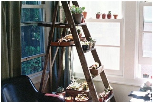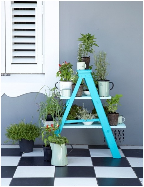 ไอเดียจัดสวนเก๋ๆด้วยบันไดไม้เก่า
