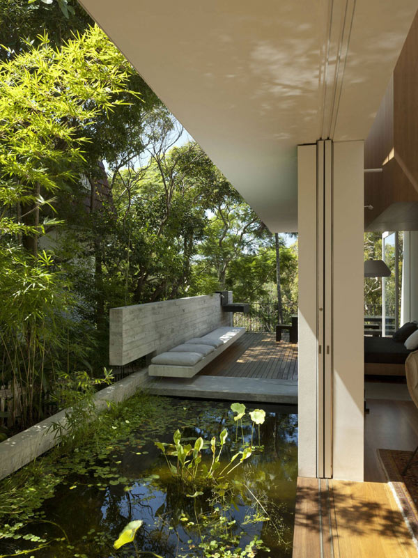 บ้านสไตล์โมเดิร์นหลังนี้ ถูกสร้างอยู่บนเนินเขา โดยใช้ความโมเดิร์นรของบ้านผสมผสานเข้ากับก้อนหินใหญ่บนเนินเขาและป่าไม้บริเวณรอบๆ ดูสวยงามกลมกลืนเป็นธรรมชาติมากๆ โทนสีที่ใช้ส่วนใหญ่เป็นสีดำและสีขาว เฟอร์นิเจอร์ภายในก็เช่นกัน ใช้สีดำกับสีขาวเป็นหลัก การตกแต่งเน้นใช้ไม้จริง และแผ่นหิน เพื่อความกลมกลืนกับธรรมชาติโดยรอบ บ้านหลังนี้เป็นผลงานการออกแบบของ MCK Architects ประเทศออสเตรเลีย