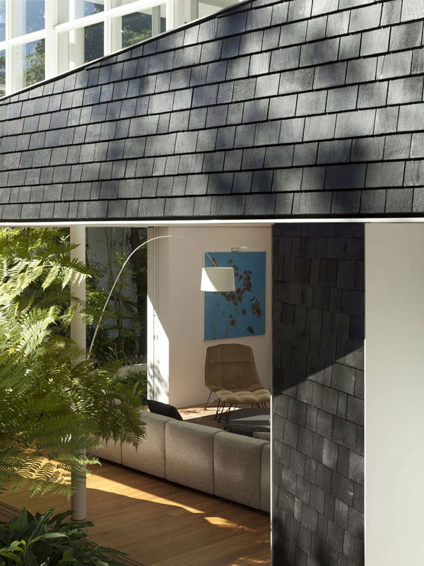 เพดานของห้องนั่งเล่นออกแบบให้สูงโปร่งเป็นกระจกใส เพื่อรับแสงธรรมชาติ