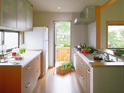 2. ควรมีการระบายอากาศที่ดีสามารถ เช็ดถูทำความสะอาดได้อย่างสะดวกหลังใช้งานอยู่เสมอ เพื่อหลีกเลี่ยงการสะสมคราบมัน เขม่าที่เกิดจากควันไฟและความชื้นในห้องครัว เลือกใช้วัสดุเฟอร์นิเจอร์ในห้องครัวด้วยวัสดุที่มีพื้นผิวเรียบ ไม่ดูดซับเศษอาหารหรือเชื้อโรค