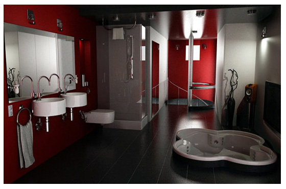 ไอเดียแต่งห้องน้ำโทนสีแดงทั้งสวยทั้งมีเสน่ห์