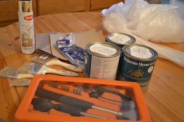 สี , กระดาษทรายหยาบ , กระดาษทรายดี , สีพ่นสีทอง , หัวไดรเวอร์แบน และค้อน , แปลงขนาดใหญ่ , แปลงขนาดเล็ก