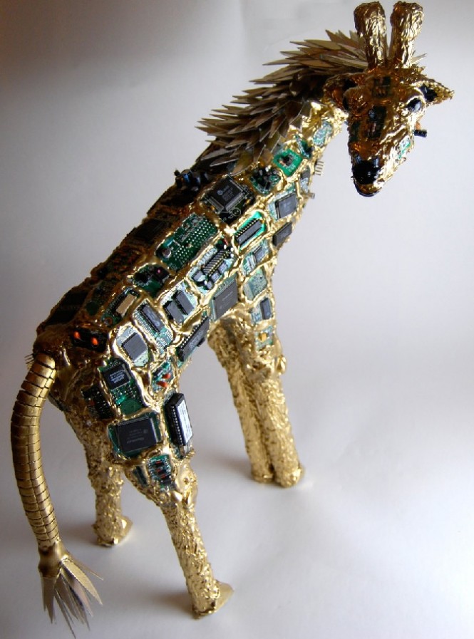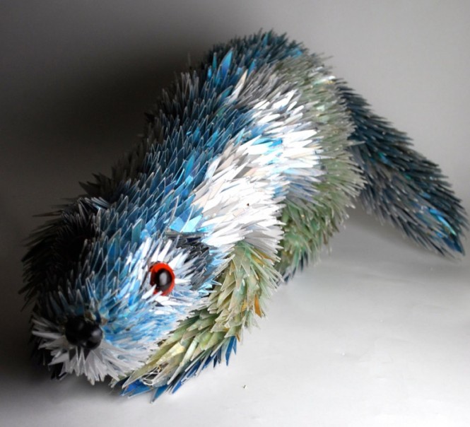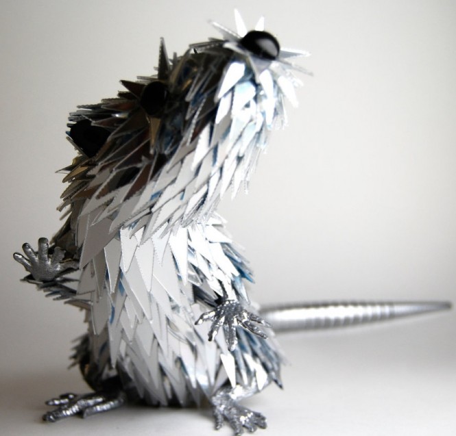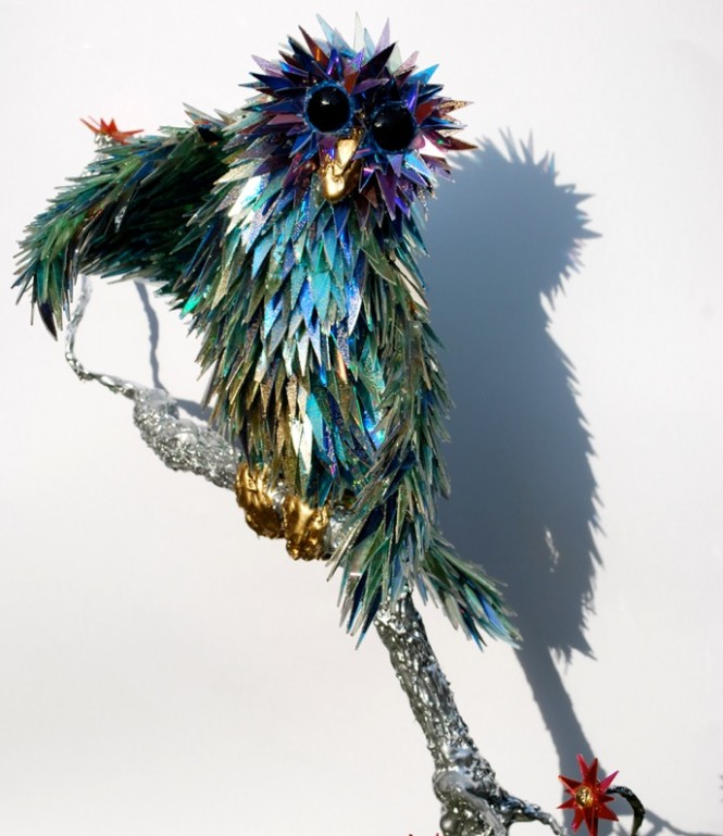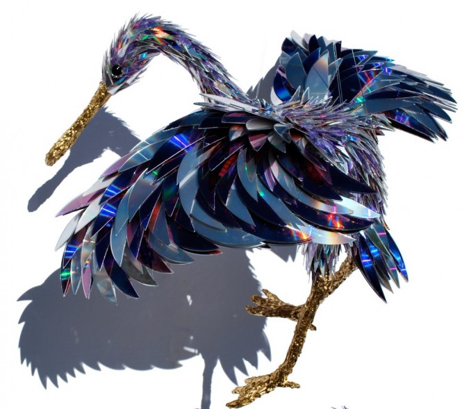 ประติมากรรมที่สวยงามทำจากเศษทิ้งแผ่นซีดี