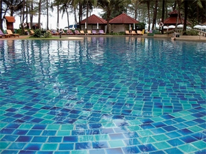 - สีกระเบื้องที่ช่วยให้สระว่ายน้ำดูเป็นธรรมชาติได้แก่ สีฟ้า สีเทอร์คอยส์ หรือสีเขียวแบบสีน้ำทะเล ส่วนกระเบื้องสีเข้มอย่าง สีดำ สีน้ำเงินเข้ม จะทำให้เรารู้สึกว่าสระว่ายน้ำดูลึกและมีมิติมากกว่า อีกทั้งยังเป็นสีที่สามารถทำให้ผิวน้ำในสระสะท้อนเงาของตัวบ้านได้ชัดเจนด้วย